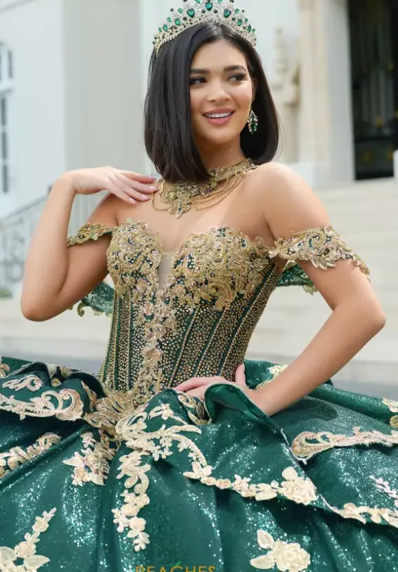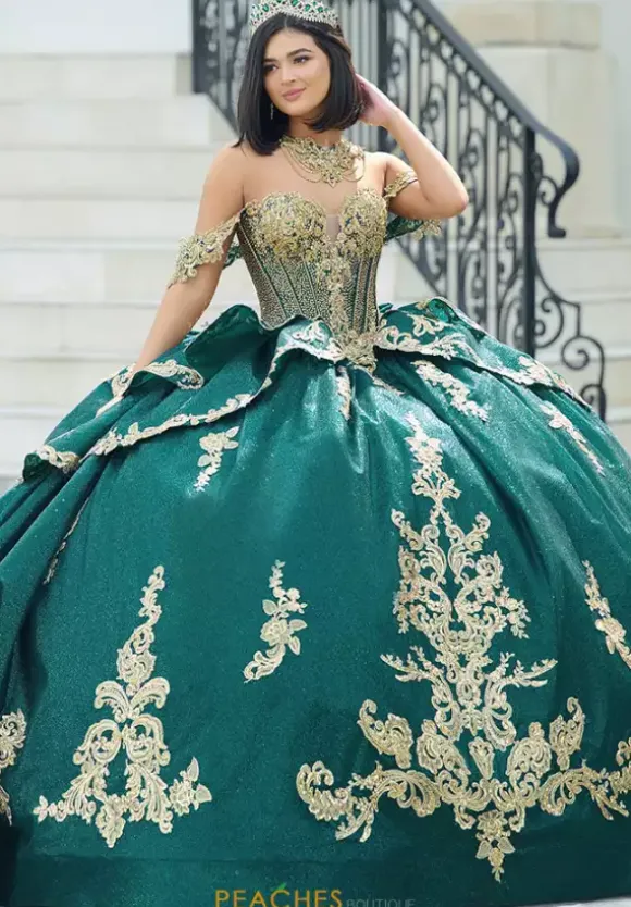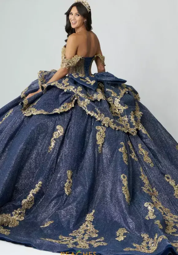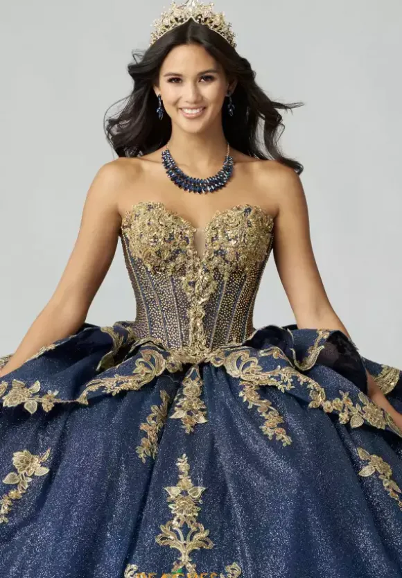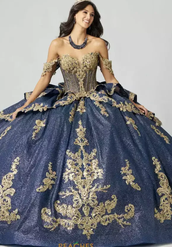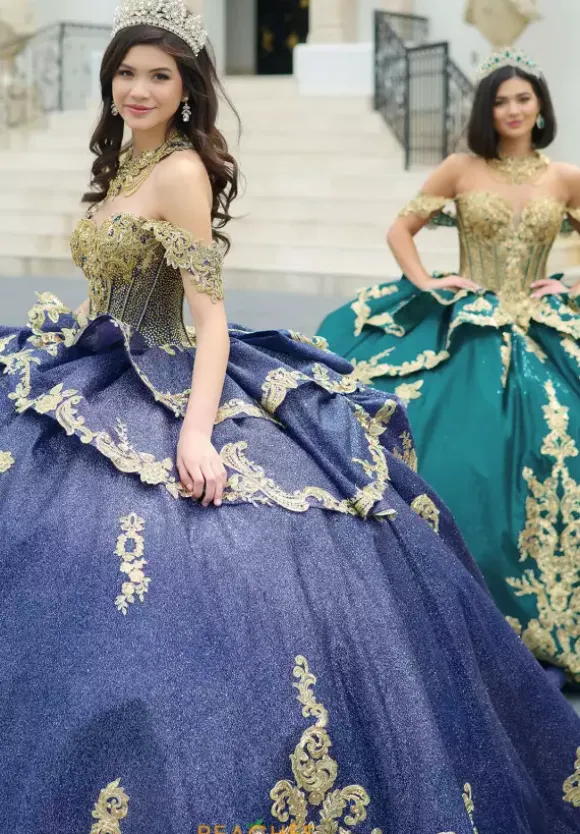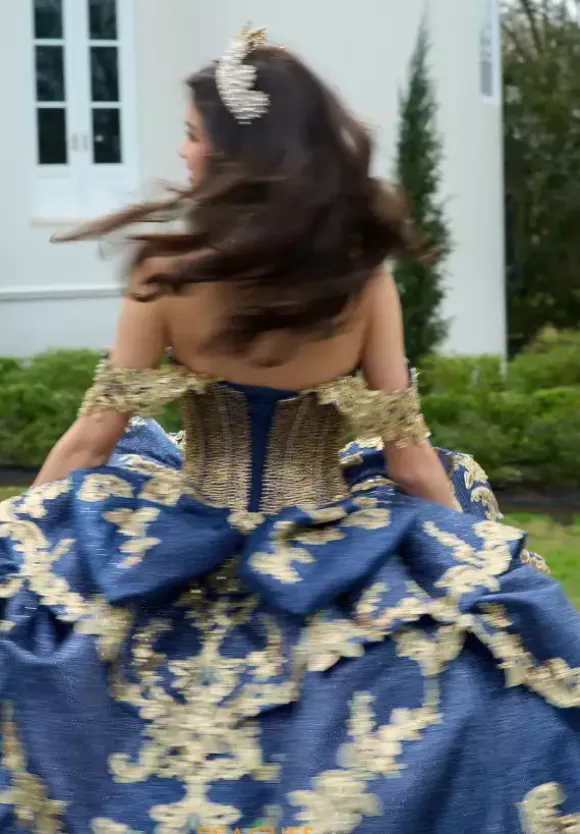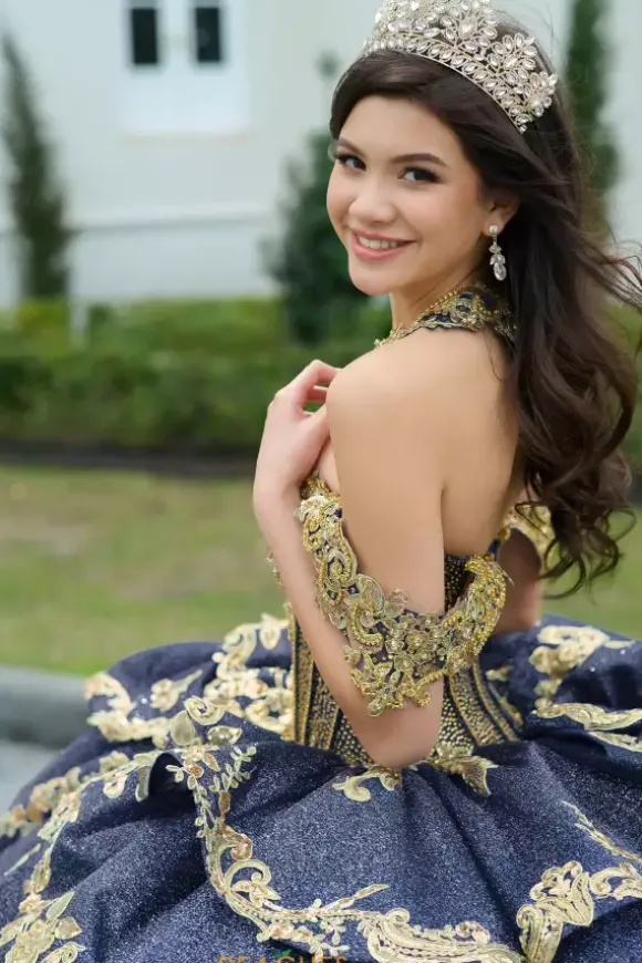 Make a dramatic entrance with this bold dress, designed by Amabella style Q1050. This enchanting ball gown features a gorgeous corset complemented by a stunning choker necklace. Made with exquisite applique and marvelous beading, this dress is truly eye catching. The detachable sleeves, combined with the elegant bow complete this dress perfectly.