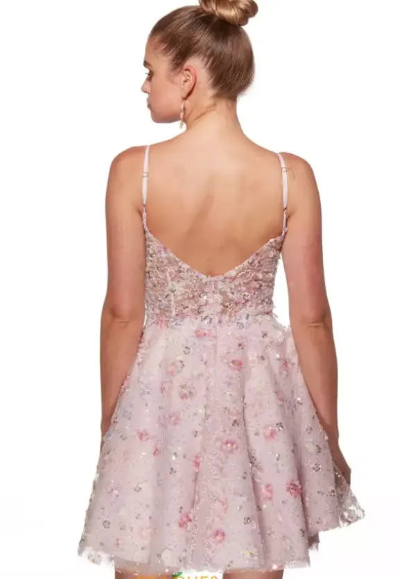 Try something new and wear this Alyce Paris dress to your next event! Style 30017 features a ravishing V neckline paired with adjustable straps that leads to captivating open back. You’ll love how this corset accentuates the charming A line silhouette. Adorned with gorgeous applique and dazzling sequins all overt the dress, the corset includes mesh on the bodice for a one of kind look.