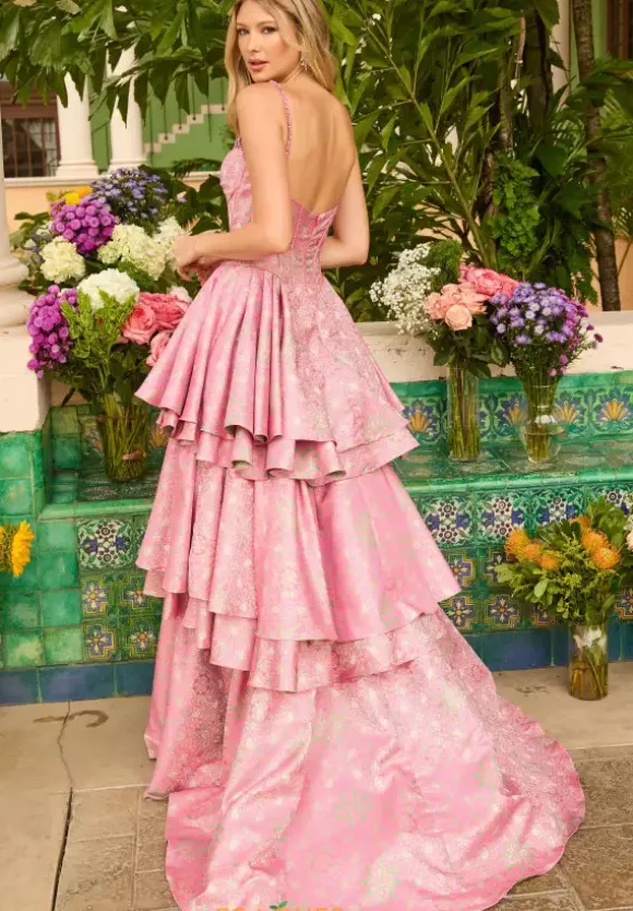 Leave an everlasting impression wearing shocking long style 42321 by Ava Presley. Showcasing the fitted corset bodice paired with delicate straps adorned in delicate beading which trails down and over the time of the v neckline. Headlining the flowing novelty skirt displaying double tiered layers and a thigh high slit to keep everyone on their toes.