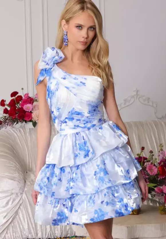 Sweet and delightful, this dashing Ava Presley a line dress 47110 is an ideal choice for homecoming. Made in a bold organza floral print fabric, the a line silhouette is a flattering choice for all figures. Showcasing a single shoulder neckline, a bold floral detailing adds a charming touch. The thick waistline defines your bodice, while the multi layer skirt adds a charismatic effect.