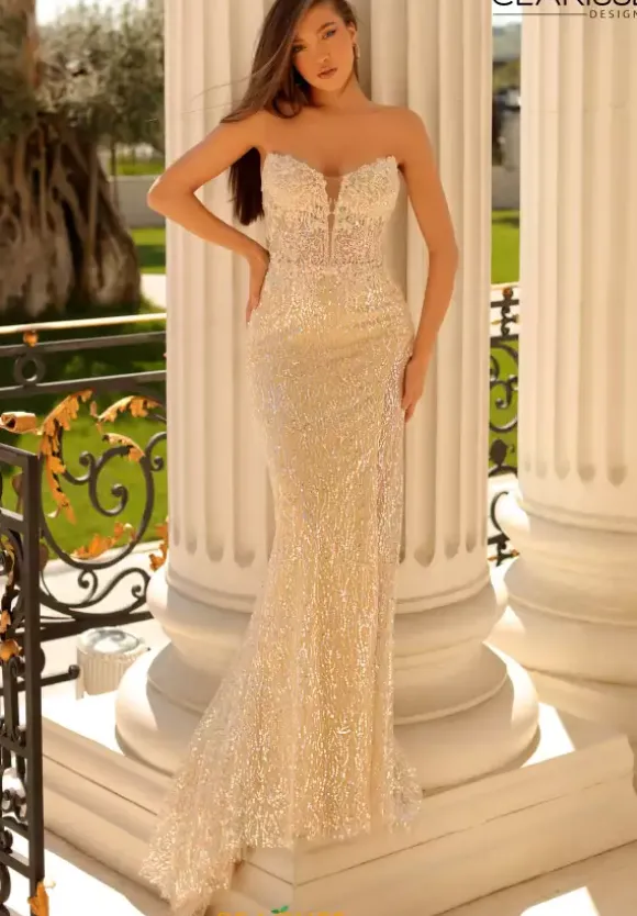 Have everyone stop and stare at you in this absolutely stunning Clarisse long dress. Body con silhouette 810782 showcases a lovely sweetheart strapless neckline paired with a corset fitted bodice accetauitng your waist beautifully. Show off your eye catching sweep train decorated with dazzling sequin that follows you gracefully.