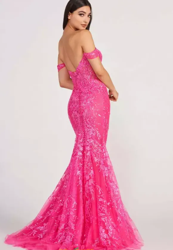 Show off your figure in this fascinating long dress EW34007 by Ellie Wilde. Showcasing an off the shoulder neckline, this stunning mermaid dress will definitely make you stand out. Fully embellished with shimmering sequins and lovely lace applique and embroidery, this lavish dress is accompanied by a sweep train.