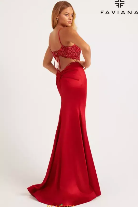 Be the talk of the night wearing this remarkable long dress style 11256 by Faviana. Featuring the flattering sweetheart neckline combined with a tasteful keyhole opening paired with a half lace corset back. Showcasing the illusion bodice embellished with exquisite beadwork trailing along the trim of the lower back beautifully. Headlining the magnificent sweep train to follow effortlessly.