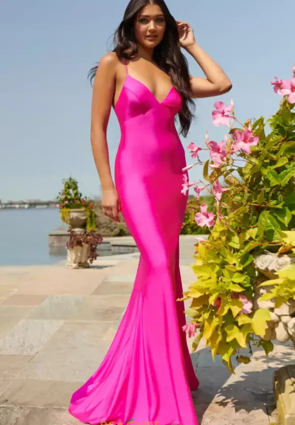 This sought after Faviana fitted long dress S10826 is flattering and available in the hottest colors! This sleek charmeuse dress has an adjustable bodice that hugs the small of your waist and the skirt features a classic sweep train that gracefully follows behind you. Ruching is featured on the zip up closure for a flattering 3D effect.