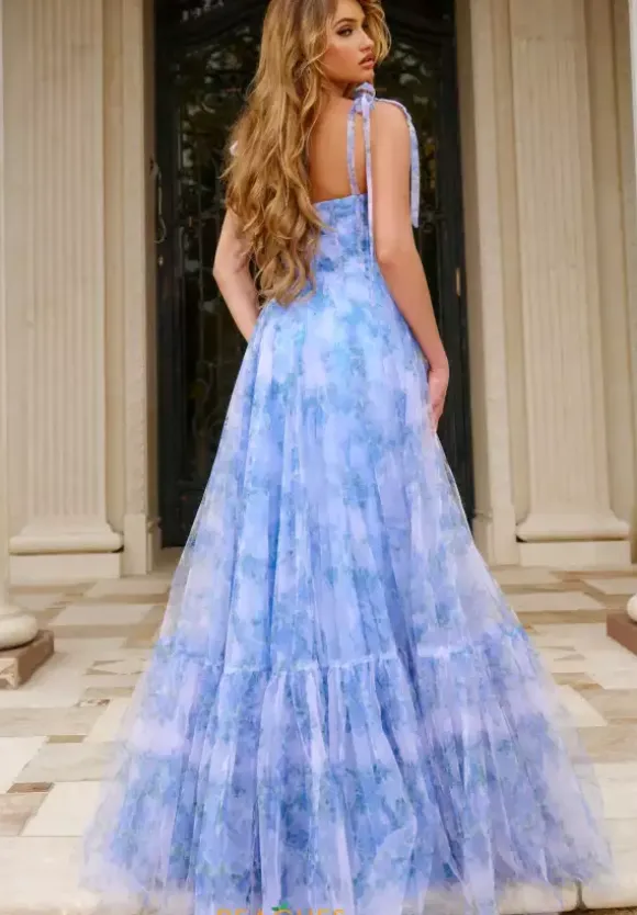 Look as if you belong on the cover of a magazine in this amazing A Line style dress made by Jovani, style 40432. This dress is completely made with soft tulle material that comes in both a print/multi option and a fun purple shade as well. With its long train, corset, and sweetheart shaped neckline, this dress will have all wondering where you got your dress from.