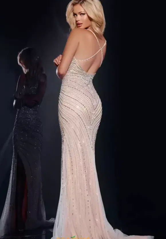 Get ready to shine and treat yourself to a fabulous look in this stunning Jovani dress, style 40820. This glamorous dress features a stylish v neckline complemented by thin straps that lead to a gorgeous open back. Made from tulle material, this dress is adorned with dazzling beading that will make you shine throughout the night. With its elegant slit and sweep train, you will be the star of the night.