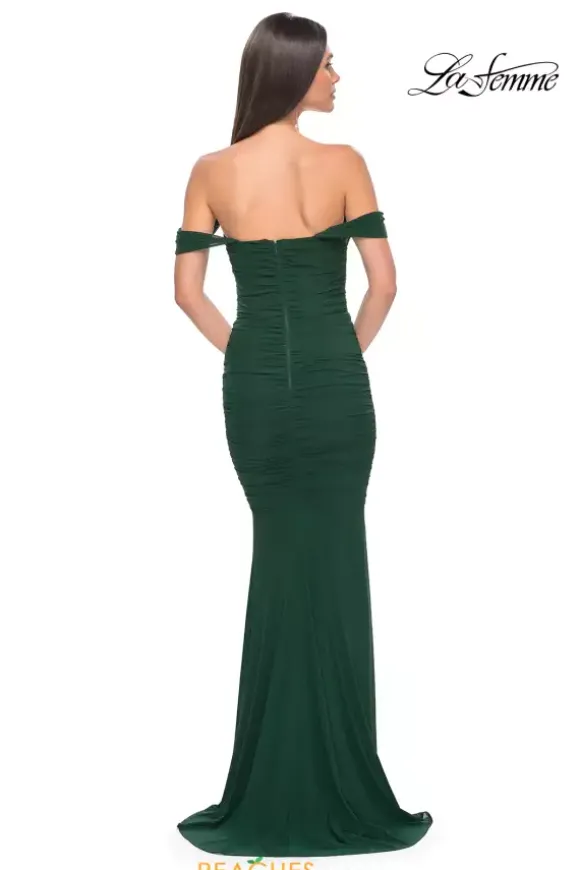 Have all eyes on you in this astonishing long and fitted style dress by La Femme, style 31914. This off the shoulder dress has an incredible sweetheart neckline and a is completely made with jersey style material that comes in either black, burgundy, green, or a show stopping royal blue. To add on to everything, this dress has a simple back zipper.