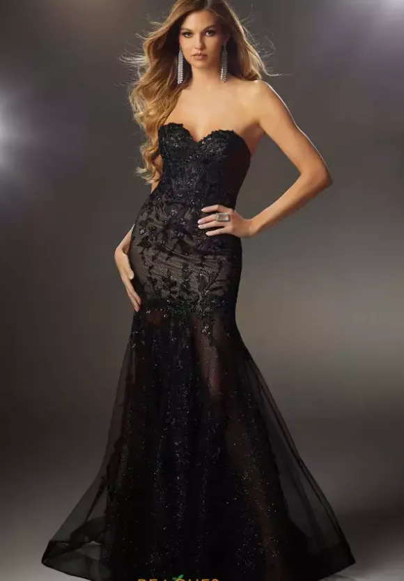 There will be many looks while you strut into the room wearing this immaculate Morilee 48006 ensemble. The corset bodice of your dreams and strapless sweetheart neckline will flatter your waistline beautifully. Featuring floral applique, glitter tulle, and shimmering beads you will exude pure fashion and glam with the mermaid silhouette.