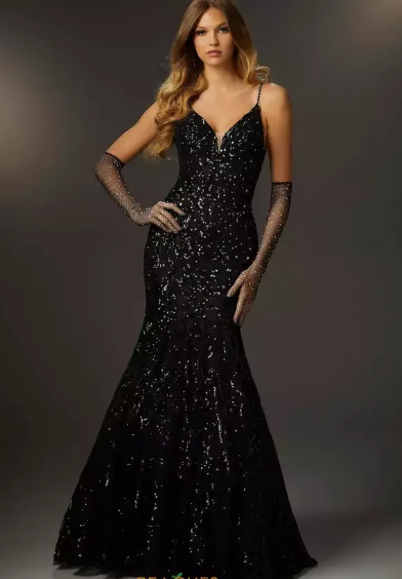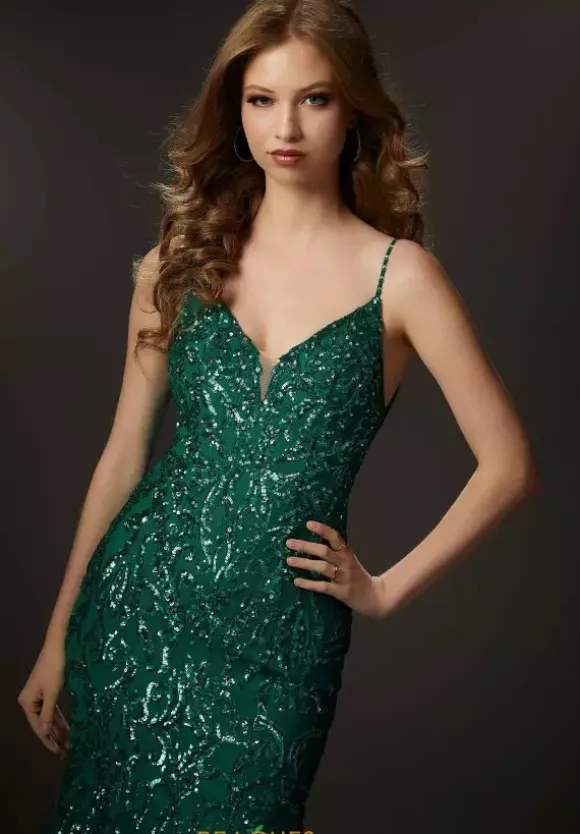 Sparkle in beauty wearing this Morilee 48008 creation that is ready to stun the crowd at your next event. Fashioned with a v neckline and embellished straps, this look is sure to flatter your bodice. Encrusted with a mix of beads and styled with a low open back, the mermaid silhouette will have you turning heads all night.
