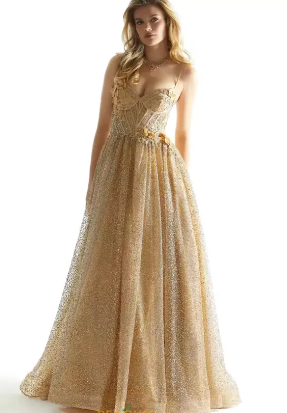 Live a modern day fairy tale at prom when you channel your inner princess and wear this spectacular long a line dress style 49001 from Morilee. This scintillating gown is made in layers of sequin tulle and sparkle tulle embellished with three dimensional flowers and sparking bead work. The sheer corset bodice showcases exposed boning, spaghetti straps and low zip up back. The a line, ball gown skirt flows beautifully to the floor with a sweep train.