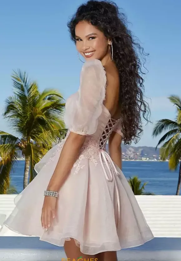 Gorgeous Morilee damas dress 9593 is the perfect choice for your occasion. Featuring a sweetheart neckline and is paired with dramatic pouf sleeves. Highlighting the fitted bodice that is detailed with ruch along the top and right at the waist it is embellished with lace applique for a more delicate look. Showcasing the on trend ruffled portion on the tulle skirt for a little dramatic look.