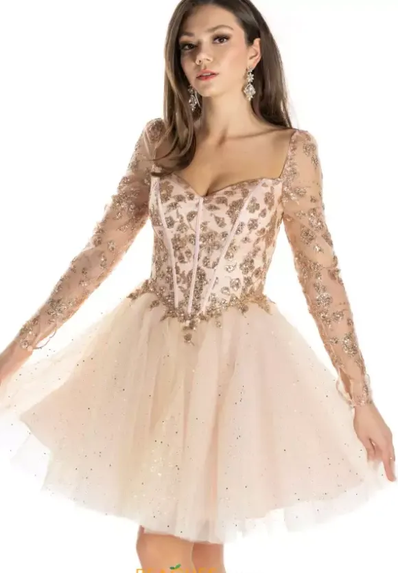 Be the star of the night when showing up in this incredible Morilee damas dress 9595 for your next occasion. The darling dress has a sweetheart neckline that is complimented with long sleeves. Featuring a corset bodice with exposed boning that is also embellished with glitter sequin. Highlighting the flare out of the a line skirt it is made of a glitter tulle and will have you dazzling all night long.