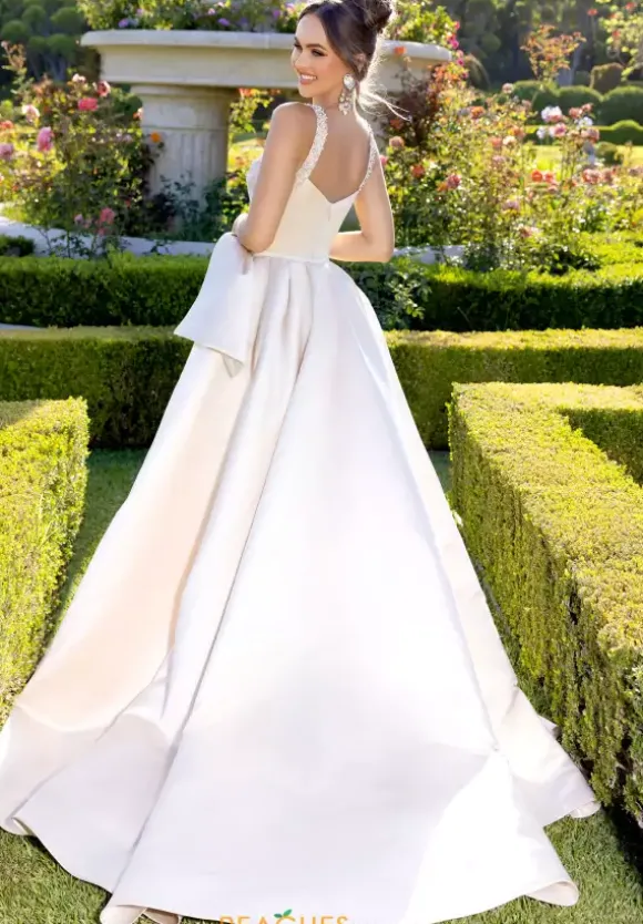Feel like you just step foot off the red carpet when wearing this extravagant one of a kind long dress by Portia and Scarlett, style PS25625E. Showcasing a fitted silhouette with an a-line over skirt. The bodice has a scoop neckline with beaded thick straps that lead to a back zipper. A beautiful bow adorns the side of the waist. This number is made out of satin material. The final touch is the thigh high slit.