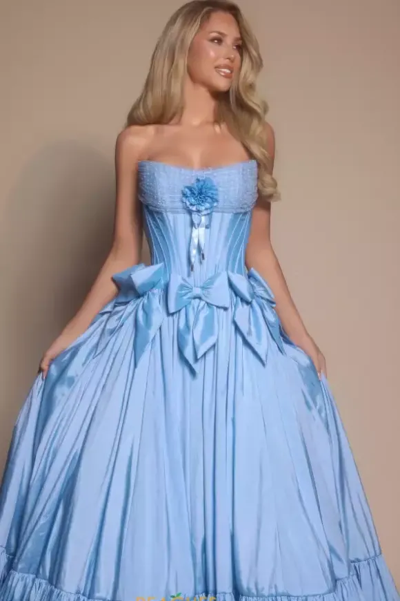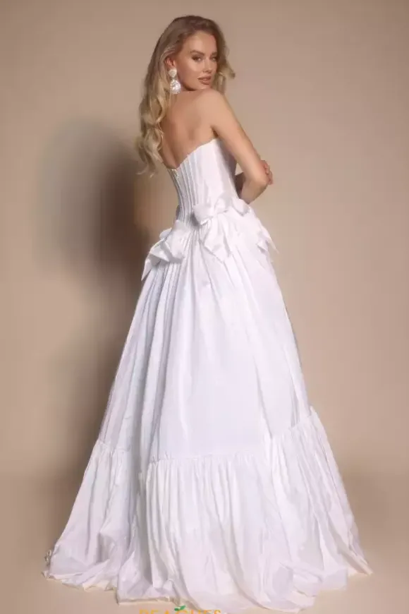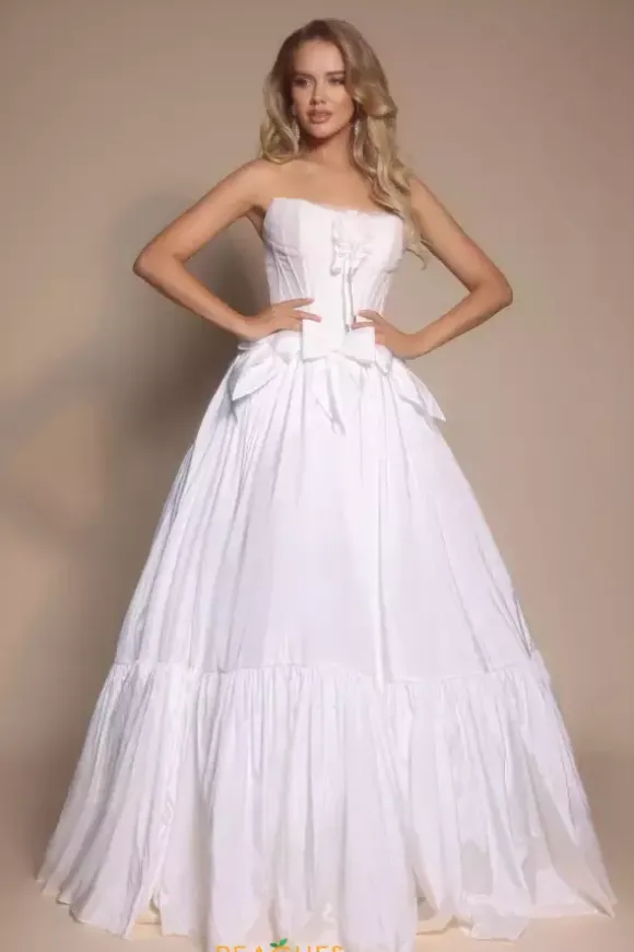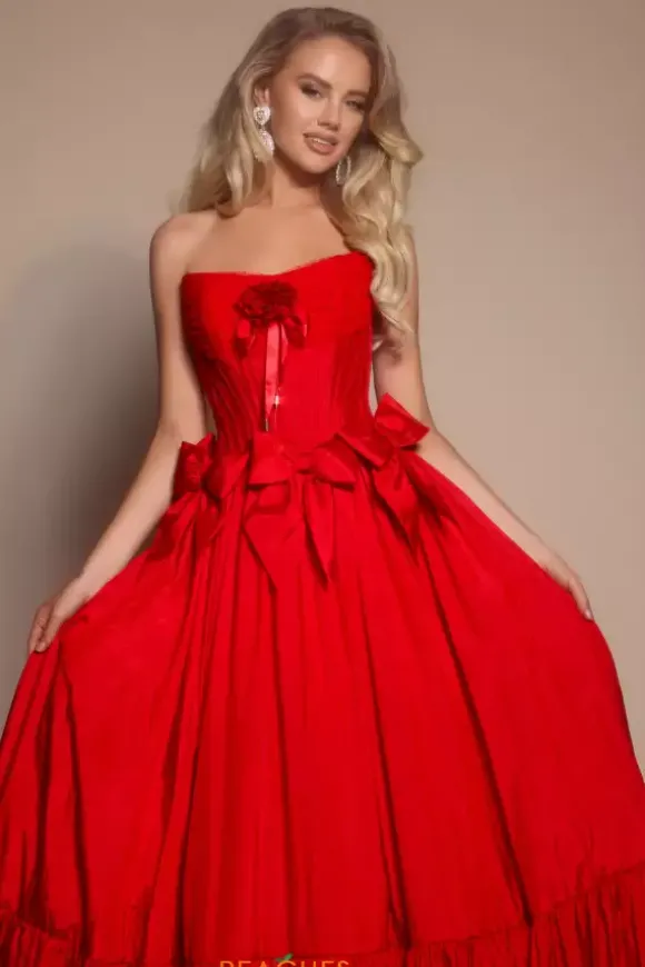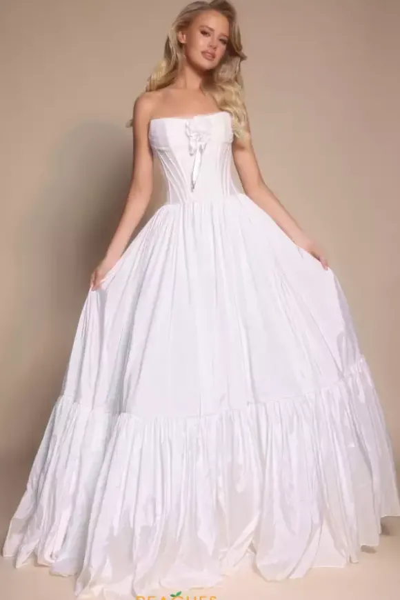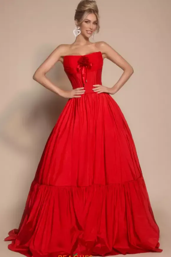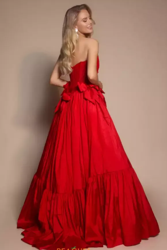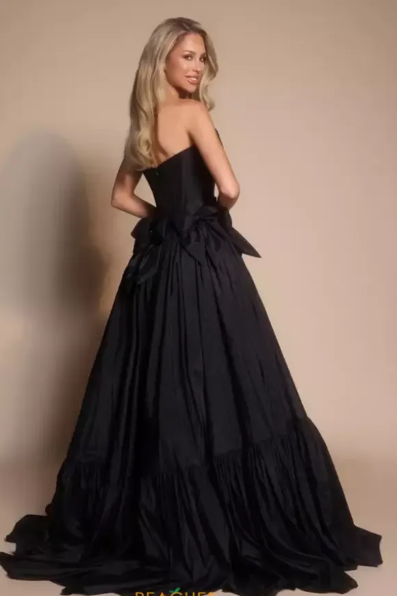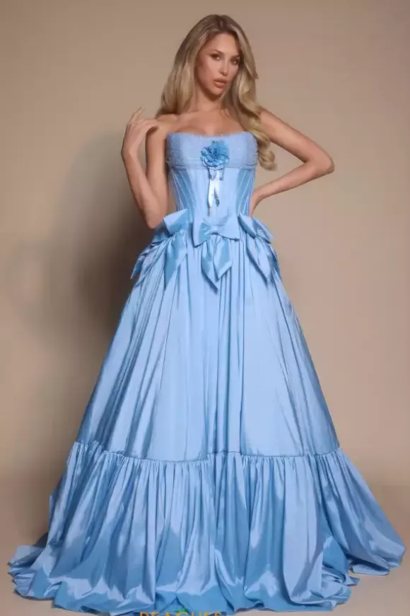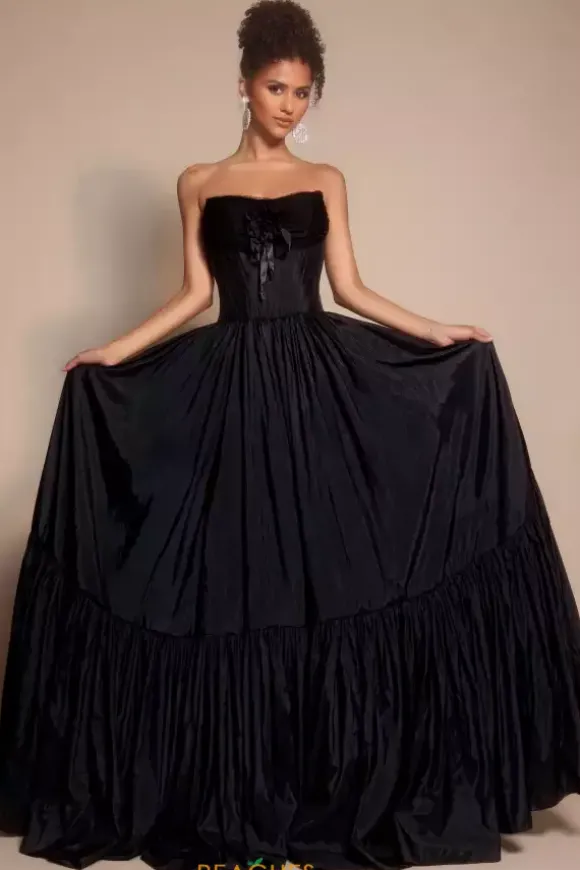 Look and feel like a modern day princess in this stunning A line gown by Portia and Scarlett PS26148. The fitted bodice showcases a strapless scoop neckline and a chic floral design. The full taffeta gown is made in a gorgeous layered effect adding the perfect touch of glam. You will certainly stand out in this gorgeous gown.