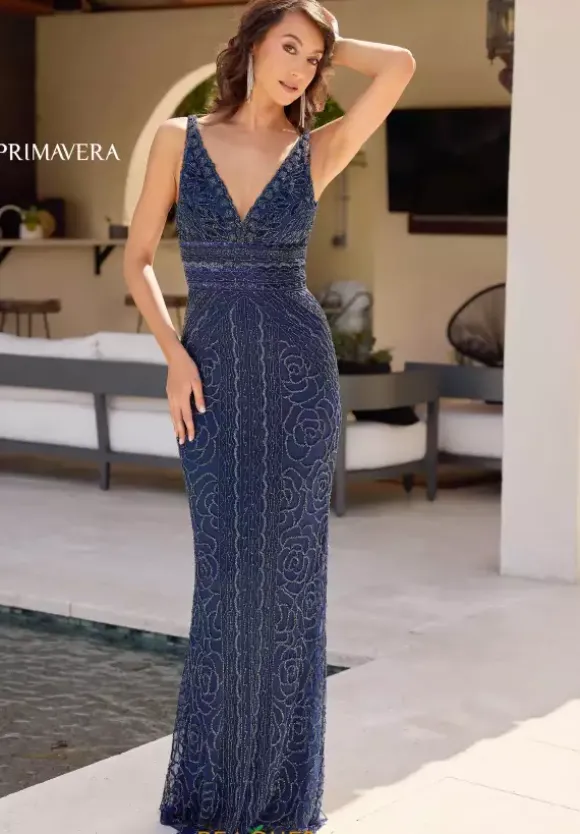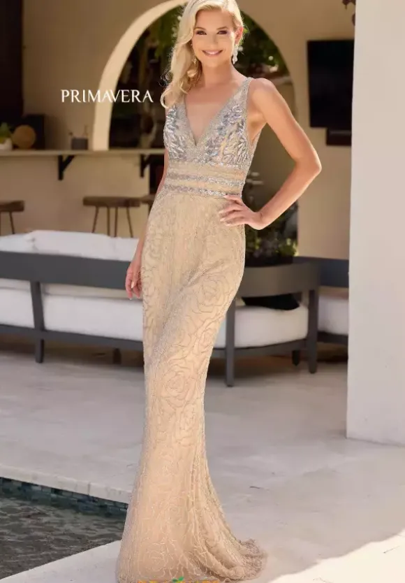 Sleek and elegant is the way to go to your next special event with this fabulous long fitted dress by Primavera style 13131. This bodice features a classic v neckline that cascades into showing off your appealing back. The material is made out of the perfect combination of both marvelous beadwork and shimmery sequins down the skirt.