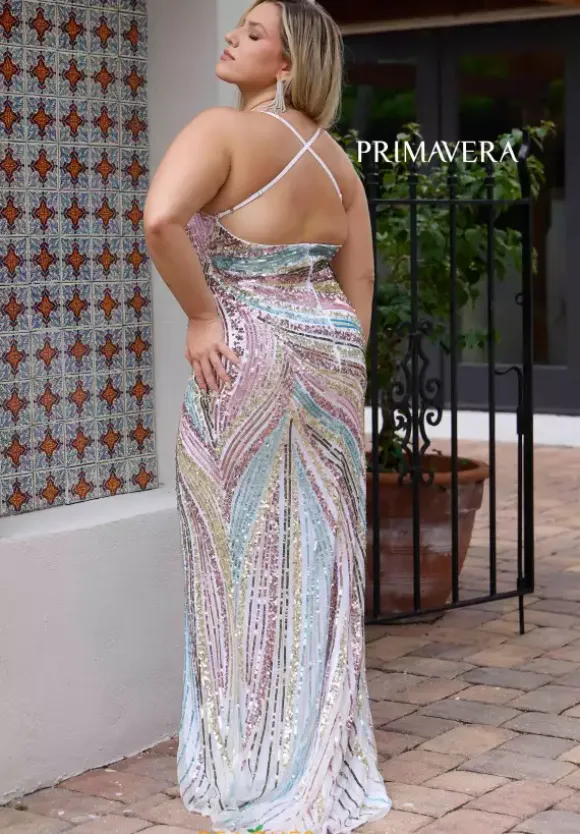 This stunning long fitted dress by Primavera 14082 exudes elegance and sophistication. Featuring intricate beadwork that catches the light, adding a touch of glamor. The striking V neckline offers a flattering touch, while the criss-cross open back adds an alluring, modern twist. You will certainly stand out at your next event.