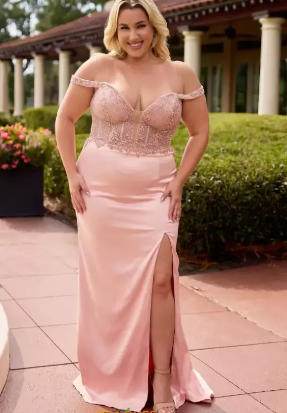 Look like pure elegance in this shimmering Primavera Fitted prom dress style 14107. Glittering lace adorns the sheer illusion paneling of the beaded corset bodice and glimmers perfectly against the top of the straight satin skirt. The silky long sweep length skirt features a classic thigh high slit.