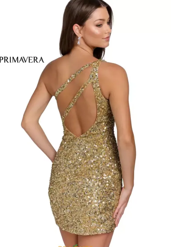 Show off your fashion forward sense and wear this Primavera style 3573 for your dance. This gorgeous short dress features an asymmetrical neckline and fitted silhouette. The dazzling hand bead work throughout this look will sparkle beautifully at your social occasion. Dramatic open back with double thin beaded straps provides added interest to this style.