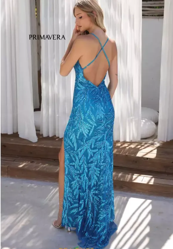 Be the hottest topic at your next special event wearing this extravagant long fitted dress by Primavera, style 4332. The bodice features a V neckline and open back with a back zipper for a effortless yet glamorous look. Complete this look with a appealing slit and train that cascades flawlessly behind you.