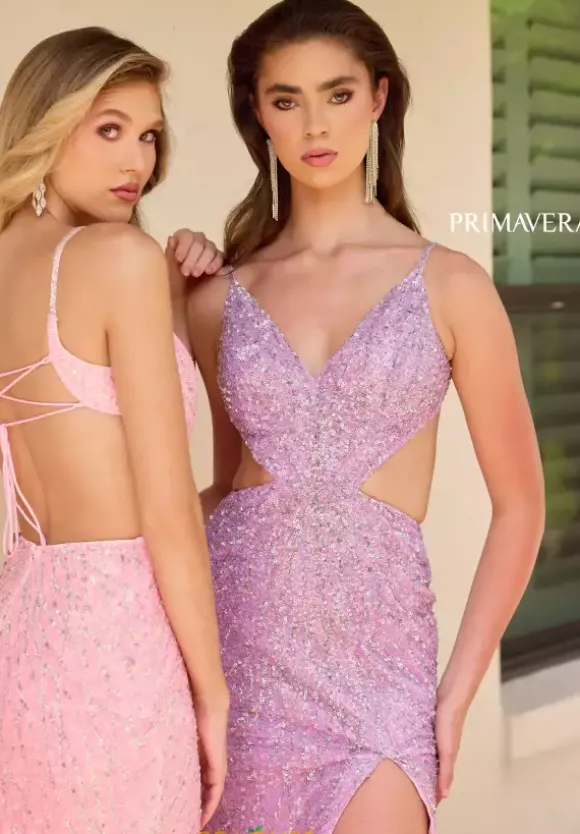 Be best dressed at your special occasion wearing Primavera long dress 4334. The body con silhouette showcases a classic v neckline with graceful beaded straps that reveal an adjustable lace up open back. This outstanding fully beaded gown features symmetrical mid riff side cuts out and a must have thigh high slit.