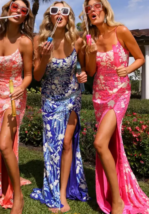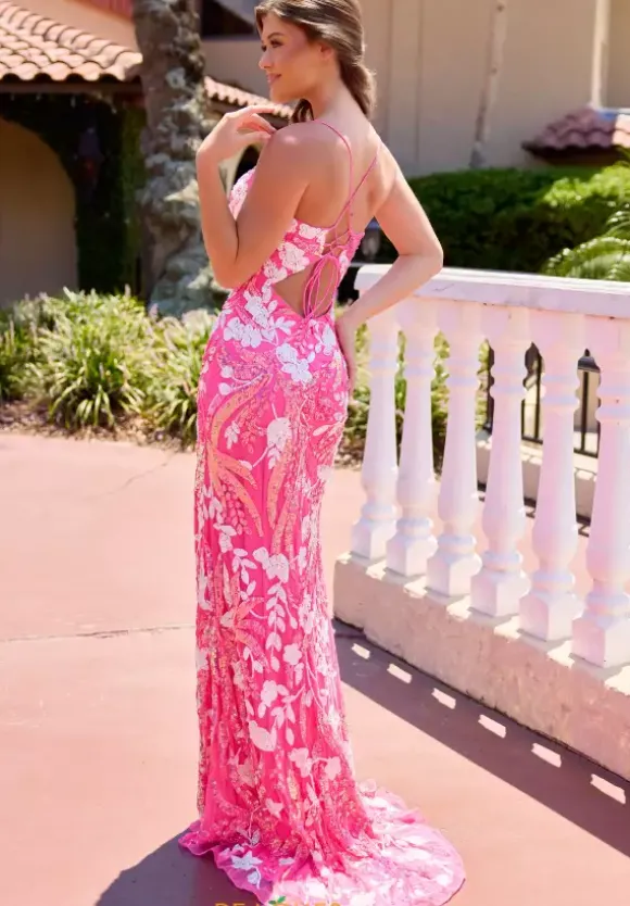 Strike a pose in this glamors long fitted dress by Primavera 4553. This one of a kind dress features a scoop neckline that cascades into a open sexy back with a corset lace up that will hug your curves beautifully. The entire dress is decorated in dazzling beadwork and sequins as well as a train and a slit.