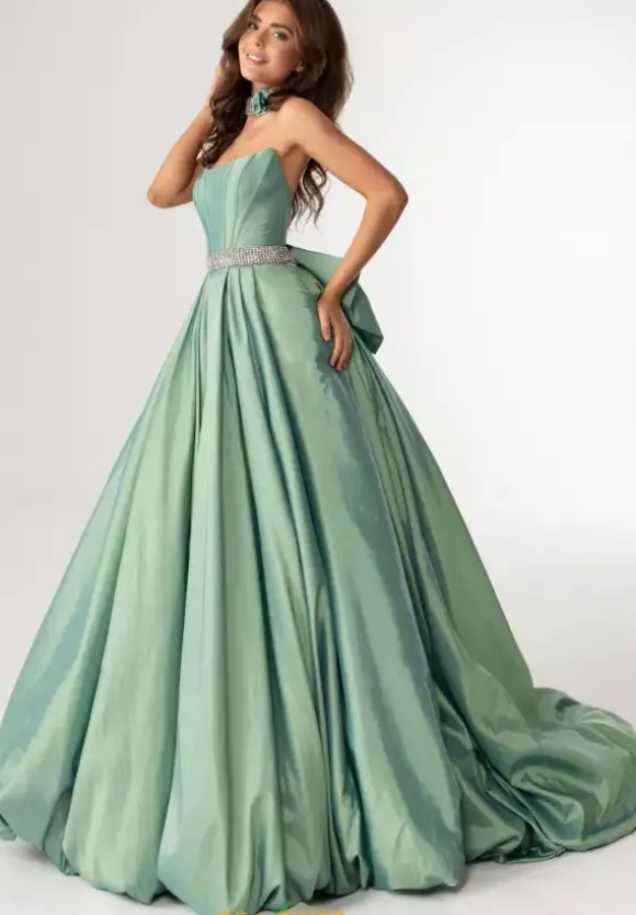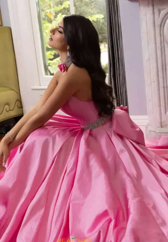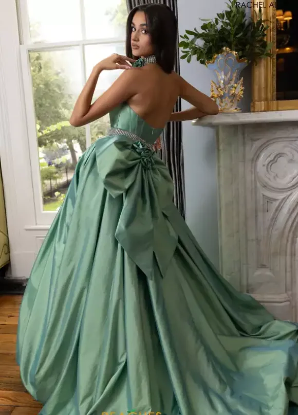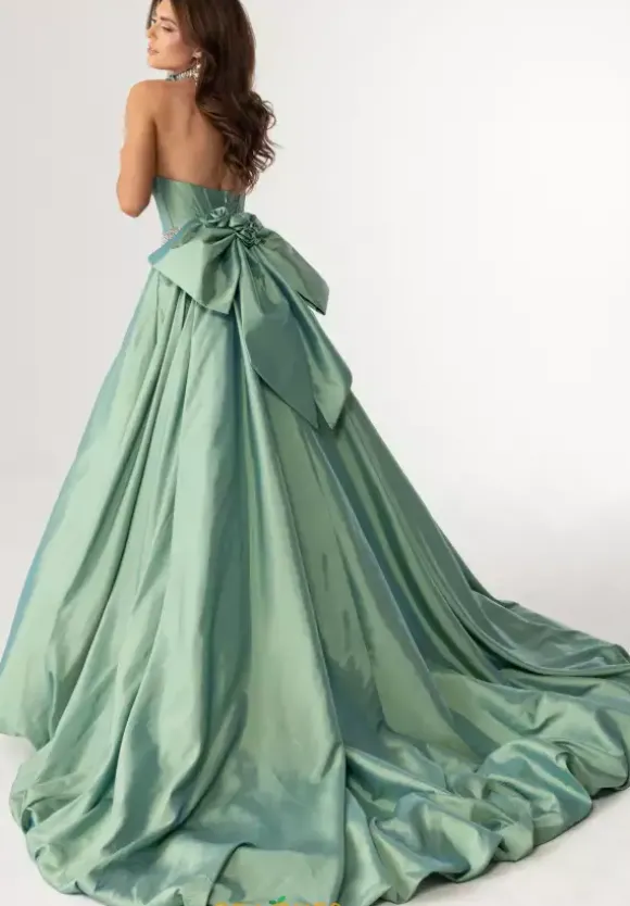 Feel like a modern day princess in this stunning Rachel Allan ball gown 71024. Regal and sophisticated, this gorgeous a line style features a strapless scoop neckline. Flattering on all figures, the fitted corset bodice showcases a beaded waistline that adds the perfect pop of sparkle. Made in a lavish taffeta fabric, the a line skirt features an lovely back bow detailing and elegant sweep train.