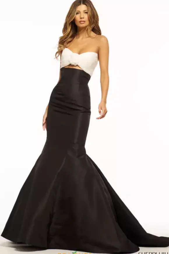 Outshine in this glamorous mermaid style dress by Sherri Hill, style 56058. The long and beautiful train of this dress will make heads turn and have you feeling your best as it comes in various colors that will suit you well, such as ivory, red and a stunning fuchsia/hot pink. The sweetheart neckline is absolutely flattering as it is complimented by the slight opening underneath the bust.