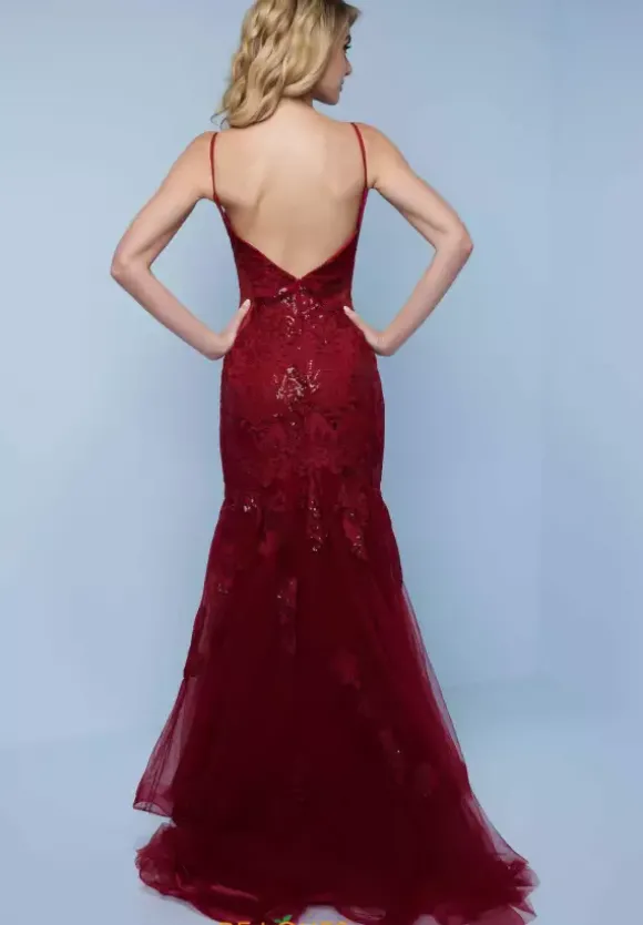 Turn heads in this absolutely stunning timeless Splash long dress K715. This fitted style showcases a scoop neckline and eye catching open back. The mixture of floral applique and dazzling sequins adds the perfect amount of sparkle ensuring your picture ready from every angle. A thigh high slit is also featured.