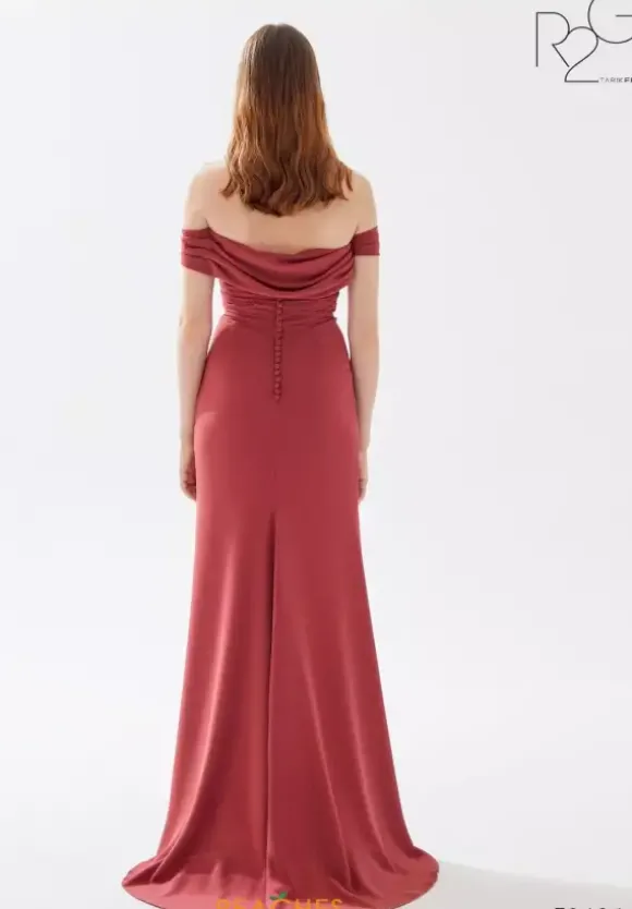 Never go out of style in elegant style 52121 by Tarik Ediz. Made from a crepe fabric, this fitted dress will hug you in all the right places and showcases draped detailing that bunches to one side. The off the shoulder neckline is accompanied by cap sleeves that reveal a drape overlay above the buttons on the back. Be on trend with a thigh high slit and sweep train.