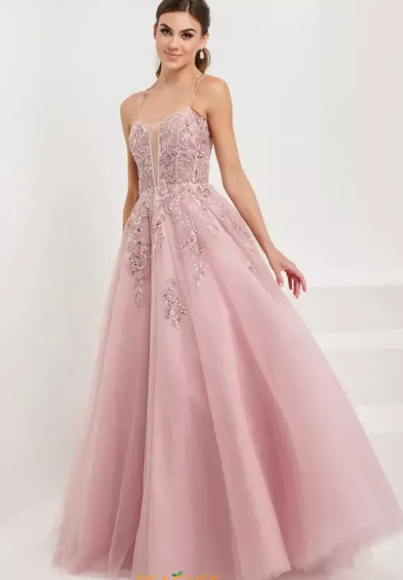 Elevate your look with this show stopping Tiffany dress 16072. Featuring a scoop neckline and a captivating corset bodice, this stunning a line gown is accompanied by double straps that fall along the back, creating a lovely corset lace up back. Entirely embellished with eye catching applique, this gorgeous dress is a must have.