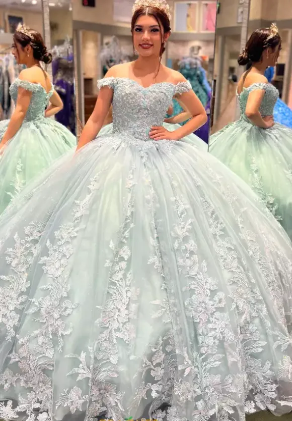 Turn all eyes into heart eyes when you wear elegant style 56462 by Tiffany Quinceanera. This traditional style dress consists of the fitted corset bodice that features the classic corset lace up that allows you to cinch and adjust the bodice to your liking. Multiple layers of tulle give the skirt the perfect amount of volume and sparkle. Stunning lace and appliques adorn the bodice and cap sleeves and make a gorgeous transition to the hem of the dress.