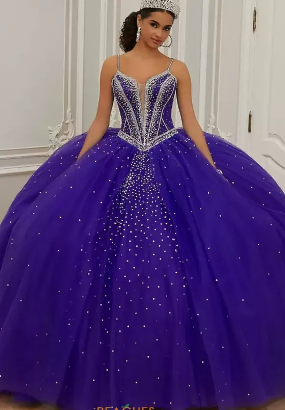 Have everyone wondering where you received your perfect Quinceanera ballgown style 60201 by Vizcaya. The fitted corset bodice is gorgeously adorned with intricate beadwork. Trailing down to the full tulle skirt the beadwork is meticulously placed a over for the perfect amount of sparkle. Showcasing a detachable bow and a lovely matching bolero jacket included.