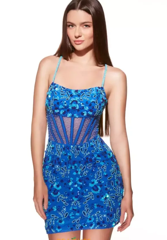 Walk into your next event ready to strike a pose when you wear this marvelous dress designed by Alyce Paris, style 40093. This short fitted dress has a combination of beautiful applique and beadwork, followed by a lovely scoop neckline and a secure corset that will leave you feeling picture perfect ready.