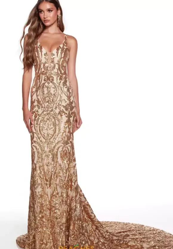 Stand out at your next special event and wear this captivating Alyce Paris dress 61412. Ravishing fitted dress features a plunging v neckline with thick straps and is accompanied by intricate detail along the sexy open back. Fully embellished with shimmering sequins, this gorgeous dress will ensure you to be seen from miles away.