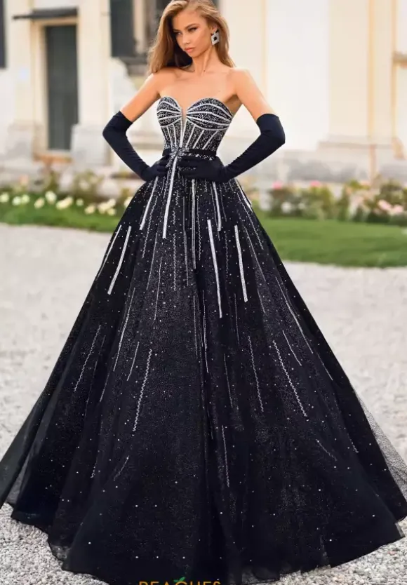 Wow the crowd wearing this striking Alyce Paris long dress 61770 for your special event. This gorgeous A line silhouette showcases a lovely sweetheart strapless neckline paired with a built in corset bodice. The soft glitter tulle skirt is adorn with radiant patterns of beadwork that will have you picture ready from every angle.