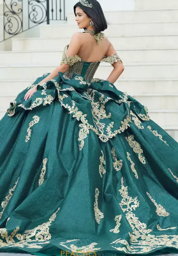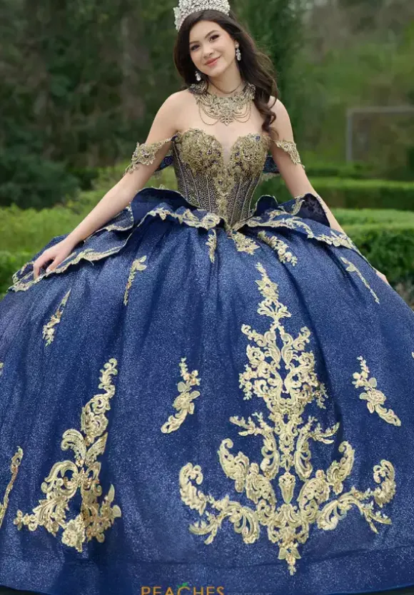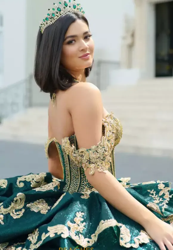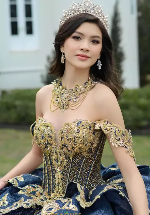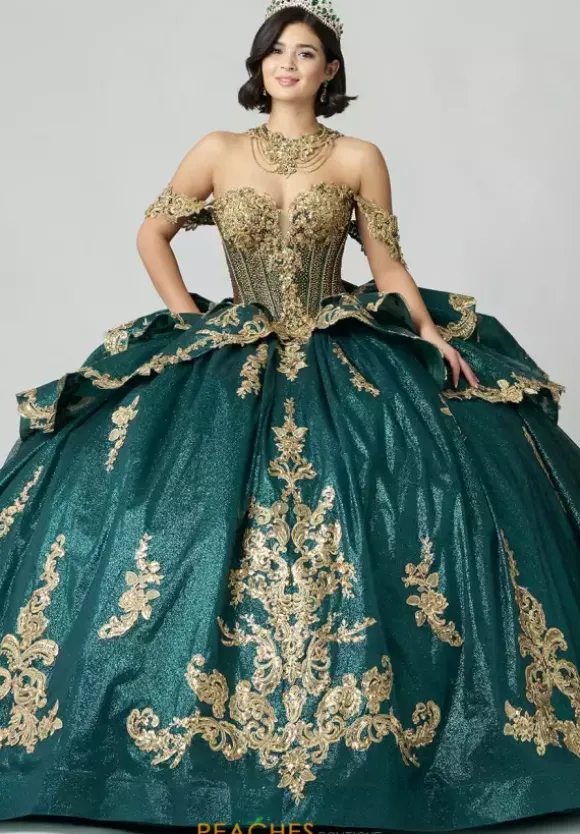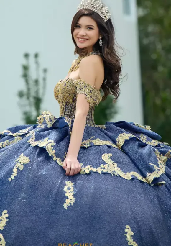 Make a dramatic entrance with this bold dress, designed by Amabella style Q1050. This enchanting ball gown features a gorgeous corset complemented by a stunning choker necklace. Made with exquisite applique and marvelous beading, this dress is truly eye catching. The detachable sleeves, combined with the elegant bow complete this dress perfectly.