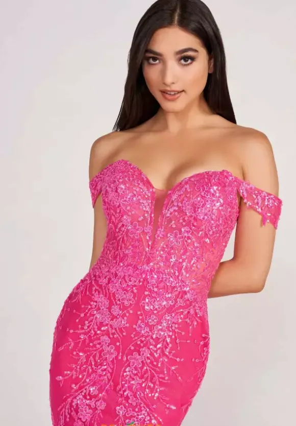 Show off your figure in this fascinating long dress EW34007 by Ellie Wilde. Showcasing an off the shoulder neckline, this stunning mermaid dress will definitely make you stand out. Fully embellished with shimmering sequins and lovely lace applique and embroidery, this lavish dress is accompanied by a sweep train.