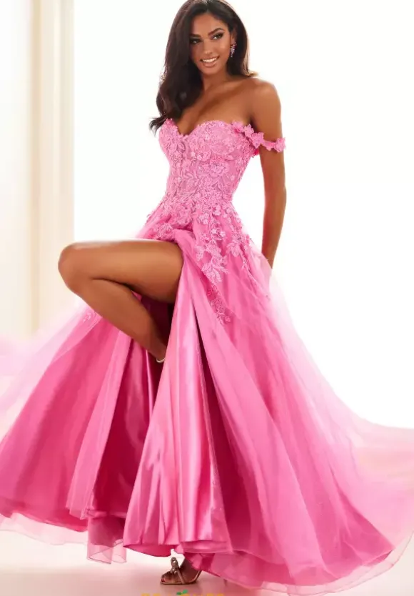 Look as ethereal as ever in this enchanting Ellie Wilde A-line dress EW35101. Glistening from top to bottom, This flattering A-line features dazzling floral appliques throughout the entire fitted corset bodice and glittering tulle skirt that features a timeless slit paired with a classic sweep train.