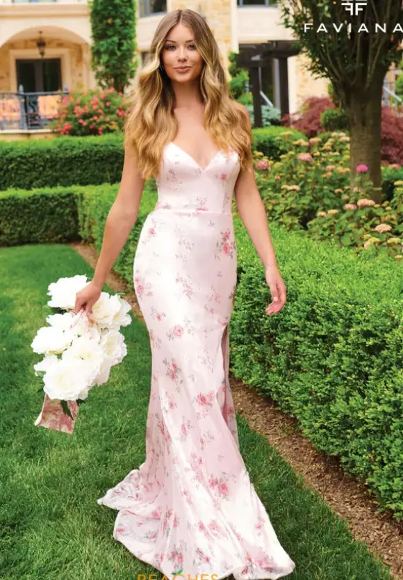Have everyone falling in love wearing the captivating long style 11221 by Faviana. The lovely dress features a flattering v neckline and is displaying a tasteful open back enclosed with lace to instantly bring definition to the waistline. Showcasing the intricate fully sequin silhouette meticulously displaying flowers beautifully all over the entire gown.
