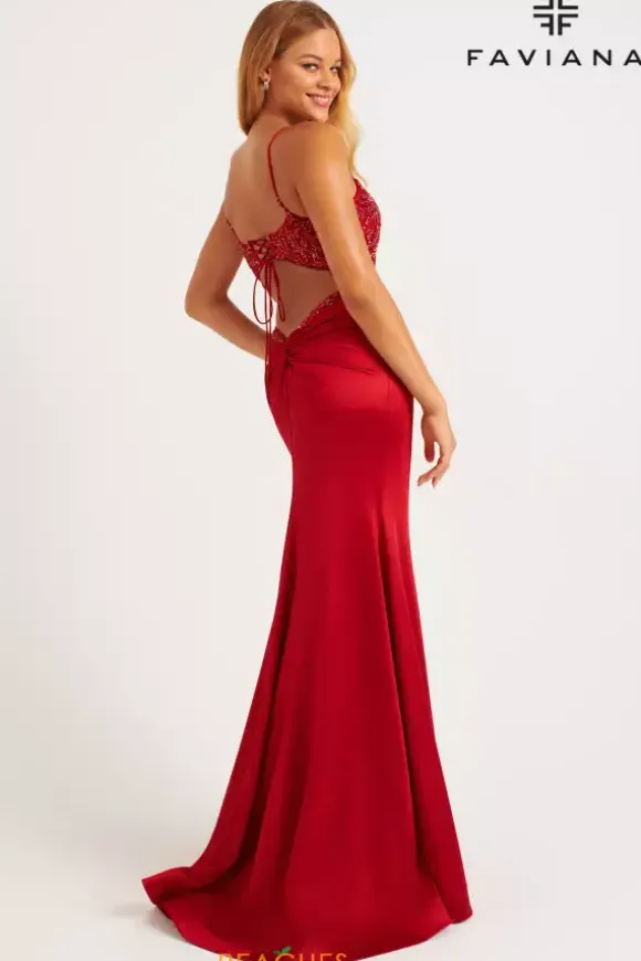 Be the talk of the night wearing this remarkable long dress style 11256 by Faviana. Featuring the flattering sweetheart neckline combined with a tasteful keyhole opening paired with a half lace corset back. Showcasing the illusion bodice embellished with exquisite beadwork trailing along the trim of the lower back beautifully. Headlining the magnificent sweep train to follow effortlessly.