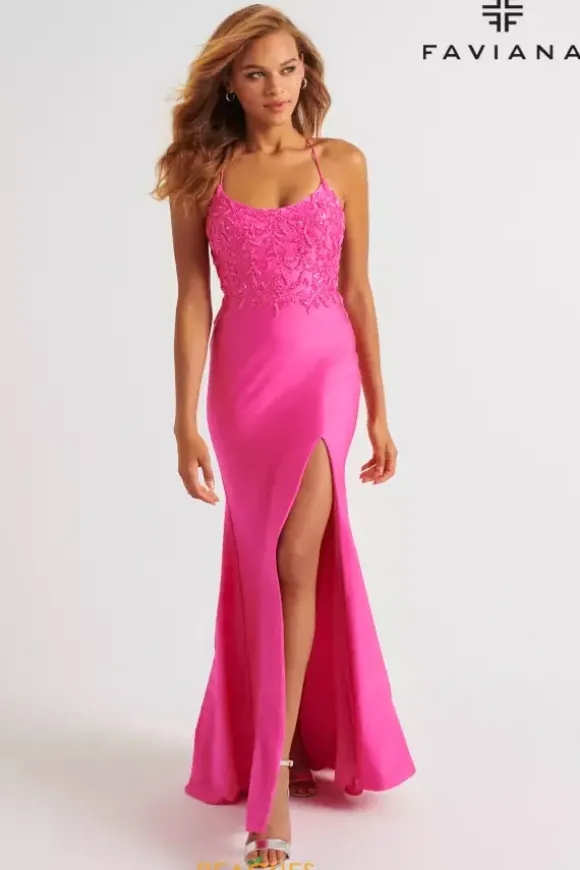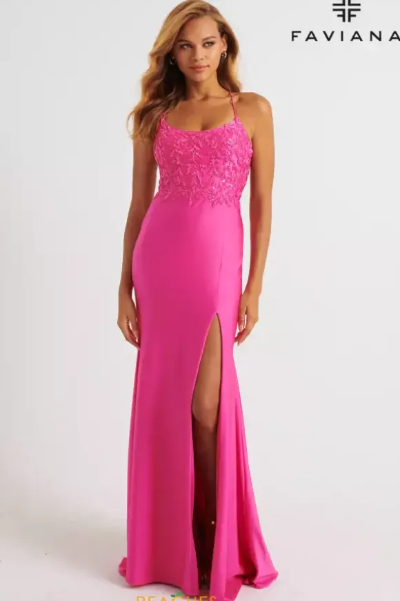 Gorgeous Faviana long dress 11264 is the perfect choice for any special event. The timeless fitted dress showcases a modest scoop neckline paired with thin shoulder straps that flow into a lace up open back ensuring a perfect fit. The charmeuse material features a touch of dazzling beadwork adding the perfect amount of sparkle.