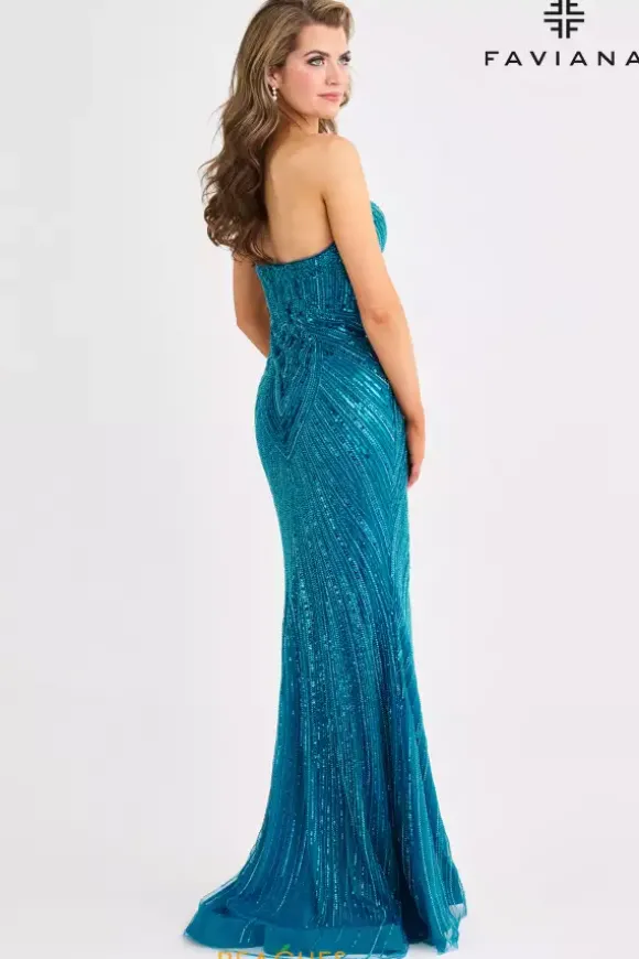 Stand out effortlessly at your special occasion wearing Faviana style 11411. This illuminating fitted dress showcases a flattering strapless v neckline and full zip up closure. Completely adorn with rows of dazzling sequins, this dress will be sure to have you shining from every angle all night long.