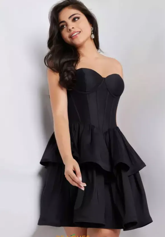Turn heads when you step into the room wearing romantic short dress JVN36620 by JVN by Jovani. This fitted dress is made from an elegant taffeta fabric and features a strapless sweetheart neckline on a fitted corset bodice while the fluffy skirt flaunts two ruffled layers to up the drama. This dress is completed with a simple zip up closure.