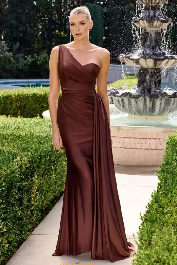 Classiness exudes from the satin shine of this figure accentuating La Divine by Cinderella straight prom dress style 106PT004. The single shoulder sweetheart neckline features ruching to add texture to the luminous satin fabric that wraps around the small of your waist and is complemented by a single elegant drape.