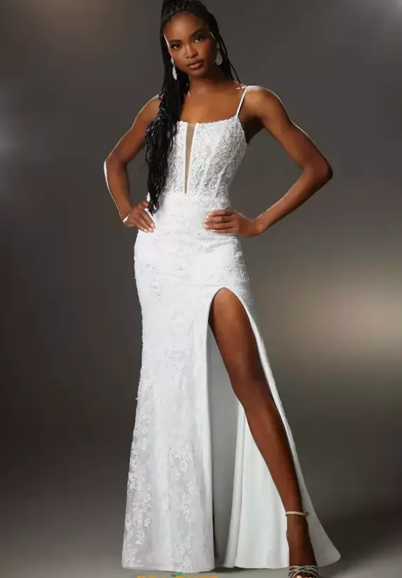 Feel and look as glamorous as ever in this exquisite Morilee long dress 48044. Displaying a scoop neckline that is paired with a mesh panel along mid bodice, this stunning fitted dress will definitely have you being the center of attention. Accompanied by corset lace up back, this striking fitted dress includes a beautiful high slit and a sweep train.