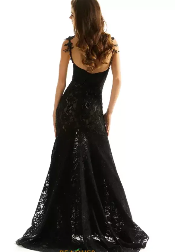 Exude elegance in this phenomenal Morilee gown 49062, a sensational dress that will mesmerize all in sight. Showcasing a low v neckline, beautiful floral appliques adorn the dainty straps giving this style a romantic edge. Made in a lavish lace fabric, shimmering stones and three dimensional floral detailing add an enchanting touch.