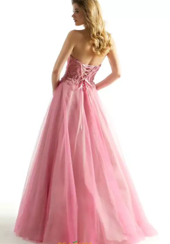 Feel like an enchanted princess when wearing this beautiful and elegant a-line dress by Morilee, style 49086. Featuring a strapless neckline with mesh in the middle adorned with unique applique and beadwork throughout the corset lace up back. Showcasing a simple and elegant skirt made out of sparkle tulle. You will for sure feel like a princess during your next special event.