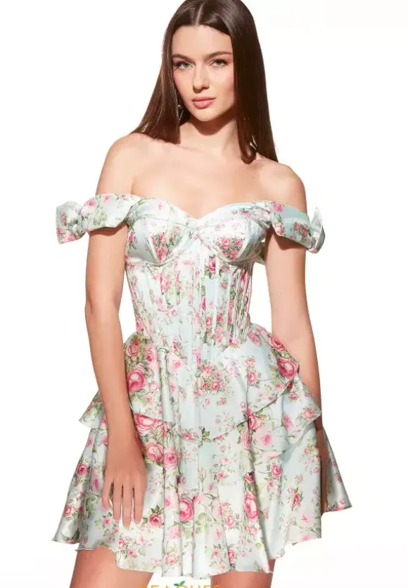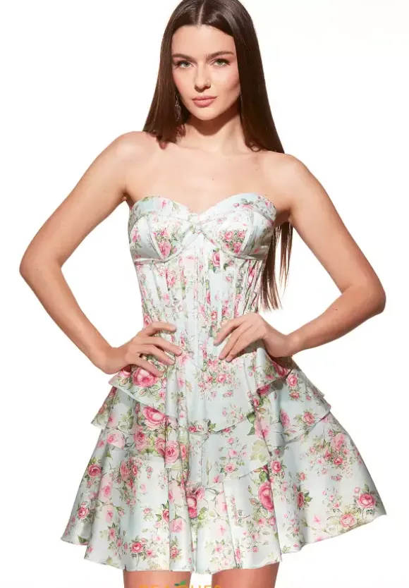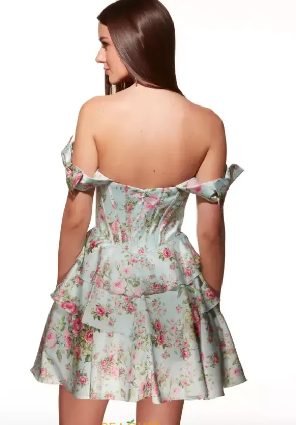 Be the hottest topic at your next special event wearing this timeless short A line dress by Alyce Paris, style 30037. Classy and bold, this satin dress features a lovely strapless sweetheart neckline and off the shoulder cap sleeves with a perfect bow. The corset ensures you feel your very best as it hugs it your tightly. Finish off this look with a gorgeous skirt with ruffles that will make you want to twirl all night.