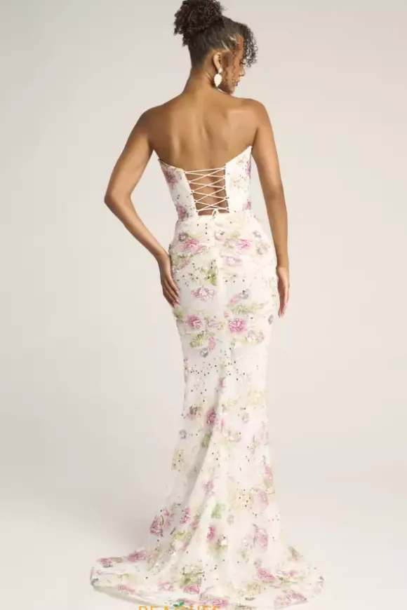 Exude timeless elegance in this stunning long fitted dress designed by Portia and Scarlett style, PS26021. Featuring a strapless sweetheart neckline and an outstanding corset with a flattering lace up back. This entire dress is detailed with a mix of dazzling beadwork, sequins and applique. A thigh high slit and a lovely long train is the perfect final touch.