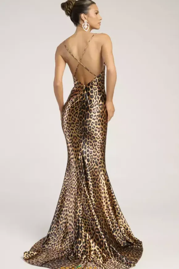 Stand out from the crowd in this captivating Portia and Scarlett gown, style PS26257. This dress features delicate straps and a graceful cowl neckline for added elegance. The bodice cinches the waist beautifully, while the fitted skirt flows effortlessly to create a flattering silhouette. For a final touch, an open back completes the look with timeless allure.